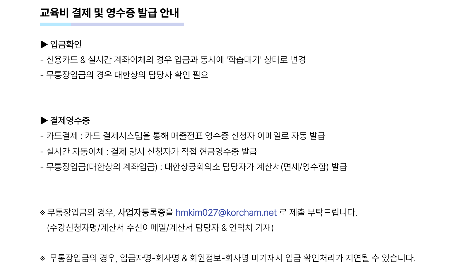 교육비 결제 후 입금확인 및 훈련비영수증 발급방법 최고관리자 / 2025.09.08