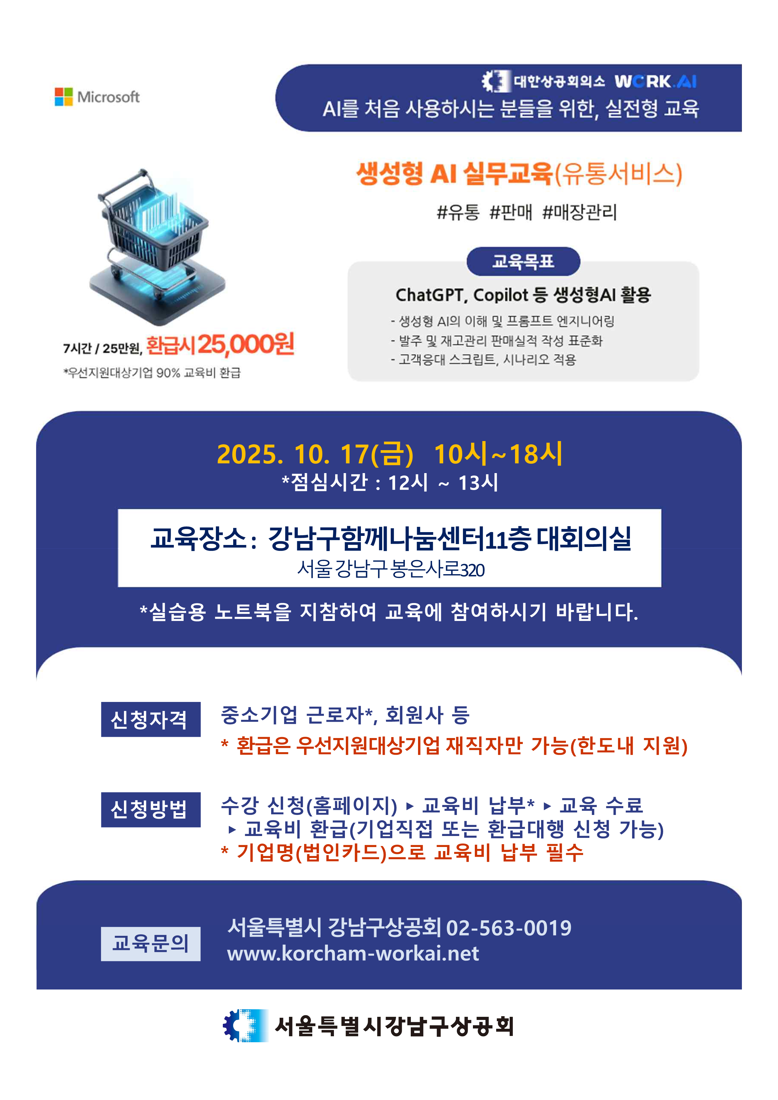 강남구상공회 [Microsoft] 생성형 AI 실무교육(유통서비스) 과정정보