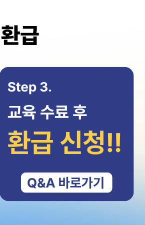 - 훈련 정보 신고일 전까지 전액 (100%) 환불이 가능하며, 이후 환불 요청 건에 대해서는 고용노동부 사업주 직업능력개발훈련 운영 규정에 따라 처리됩니다.