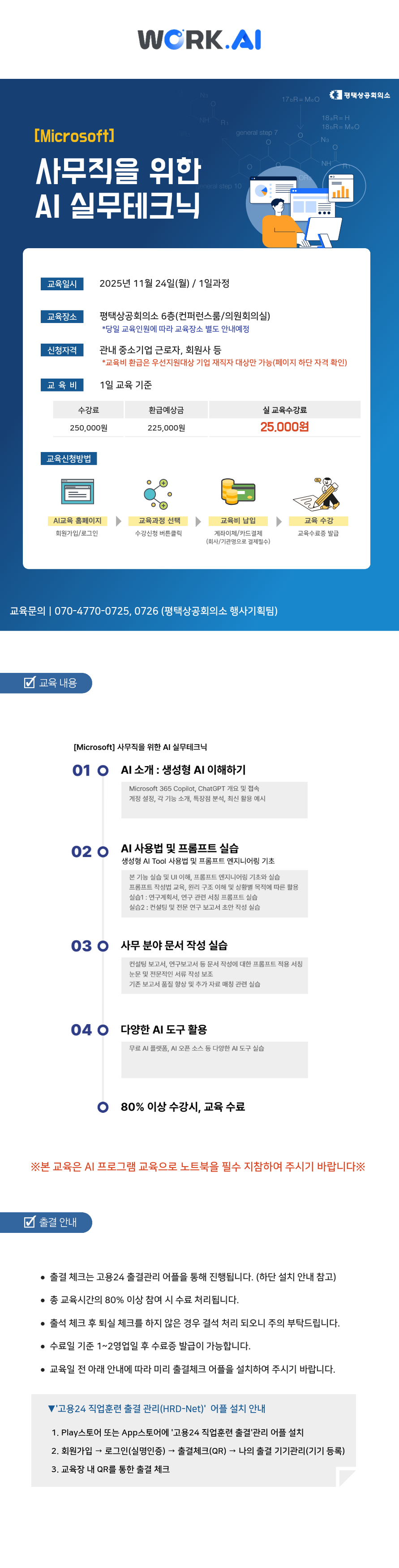 평택상공회의소 [Microsoft] 사무직을 위한 AI 실무테크닉 과정정보