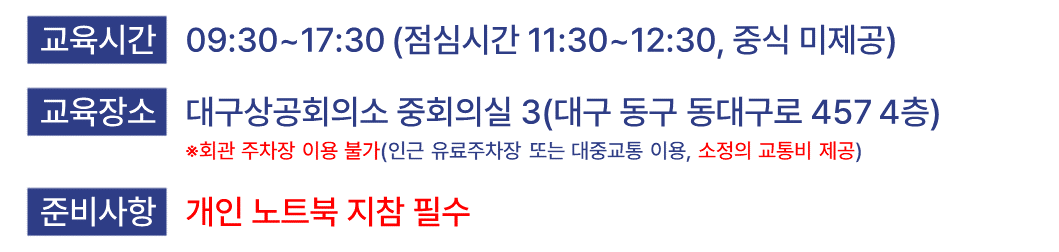 교육장소 : 대구상공회의소 4층 중회의실3(대구 동구 동대구로 457)
