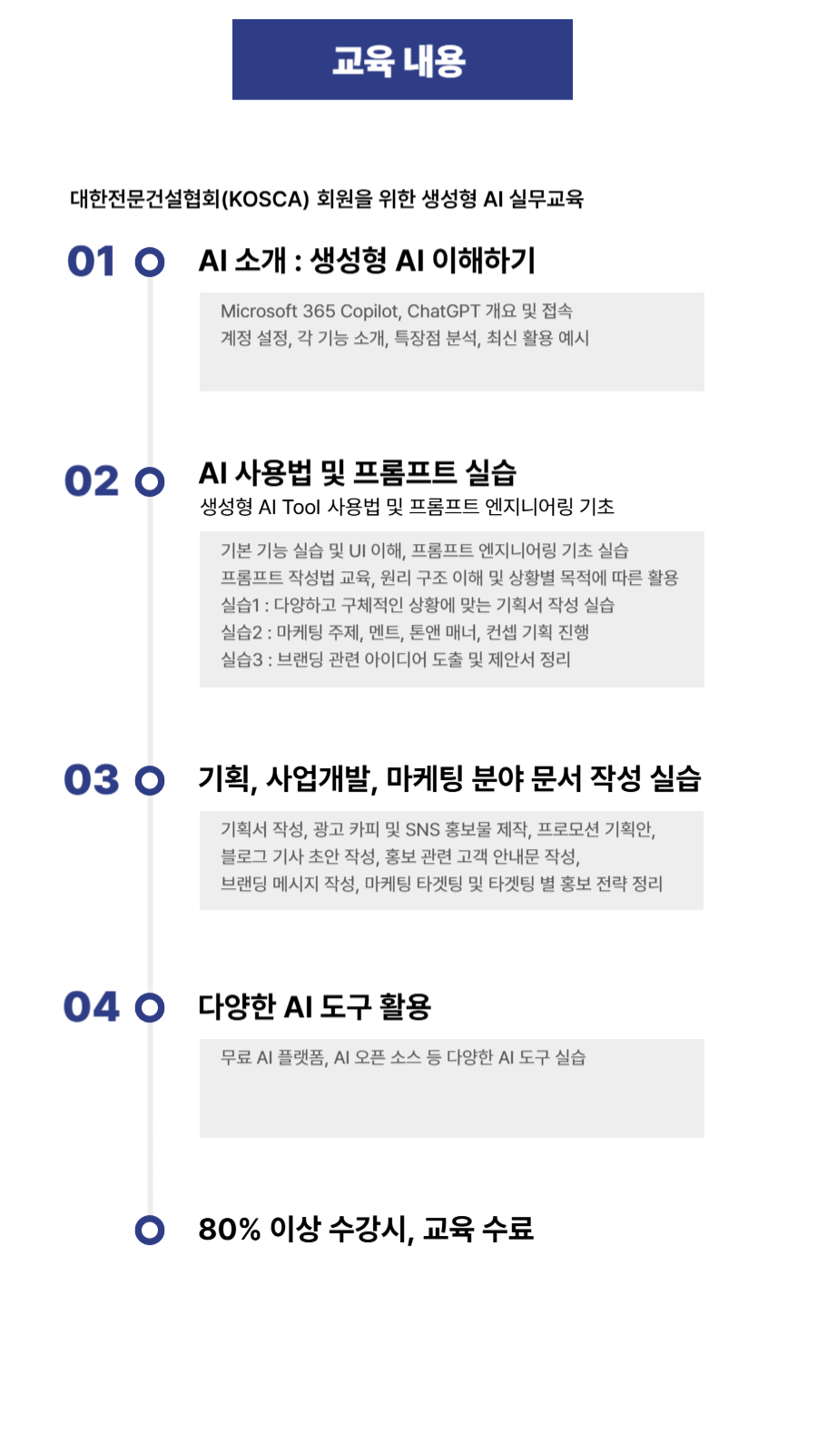 대한전문건설협회(KOSCA) 회원을 위한 생성형 AI 실무교육 과정정보