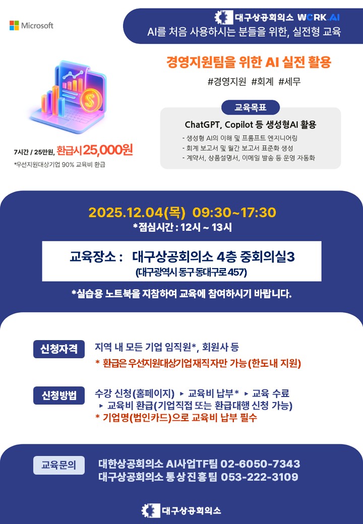 대구상공회의소 [Microsoft] 경영지원팀을 위한 AI 실전 활용 과정정보