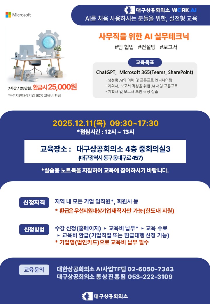 대구상공회의소 [Microsoft] 사무직을 위한 AI 실무테크닉 과정정보