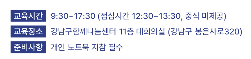 ※ 모든 결제는 기업명의로 진행되어야 하며, 개인 결제 시 환급이 불가함(환급 없이 수강 희망시 개인결제도 가능)