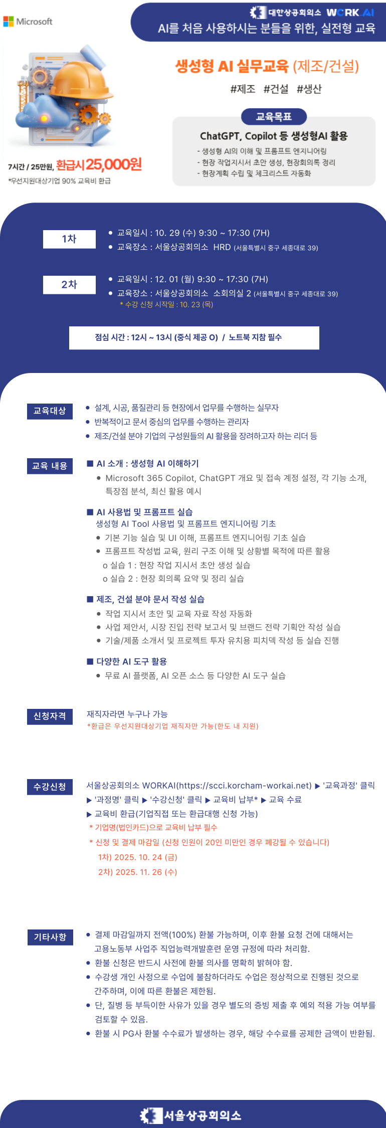 [서울상공회의소] 생성형 AI 실무교육(제조/건설)